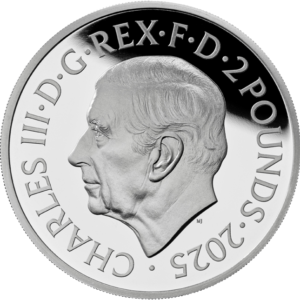 El anverso presenta el retrato oficial de Su Majestad el Rey Carlos III, consolidando esta emisión como parte de una nueva etapa en la numismática británica. El reverso, diseñado por Philip Nathan, muestra a Britannia con su característico tridente y escudo.