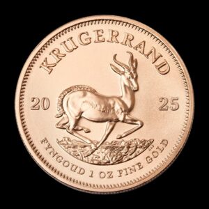 El Krugerrand de oro de 1 oz es probablemente la moneda de oro más conocida y más utilizada del mundo. También es la moneda de oro más antigua que todavía se produce en la actualidad. Se produce en la Casa de la Moneda de Sudáfrica, cerca de Johannesburgo, desde 1967. Una característica especial del Krugerrand es que, aunque no tiene valor nominal, es un medio de pago oficial en la República de Sudáfrica.