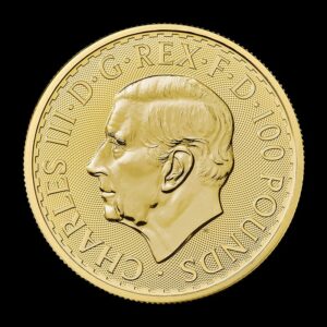 El retrato del rey del monarca británico Carlos III se representa en el lado del valor del Gold Britannia. La diosa protectora Britannia, que simboliza el reino inglés, adorna el lado del motivo.